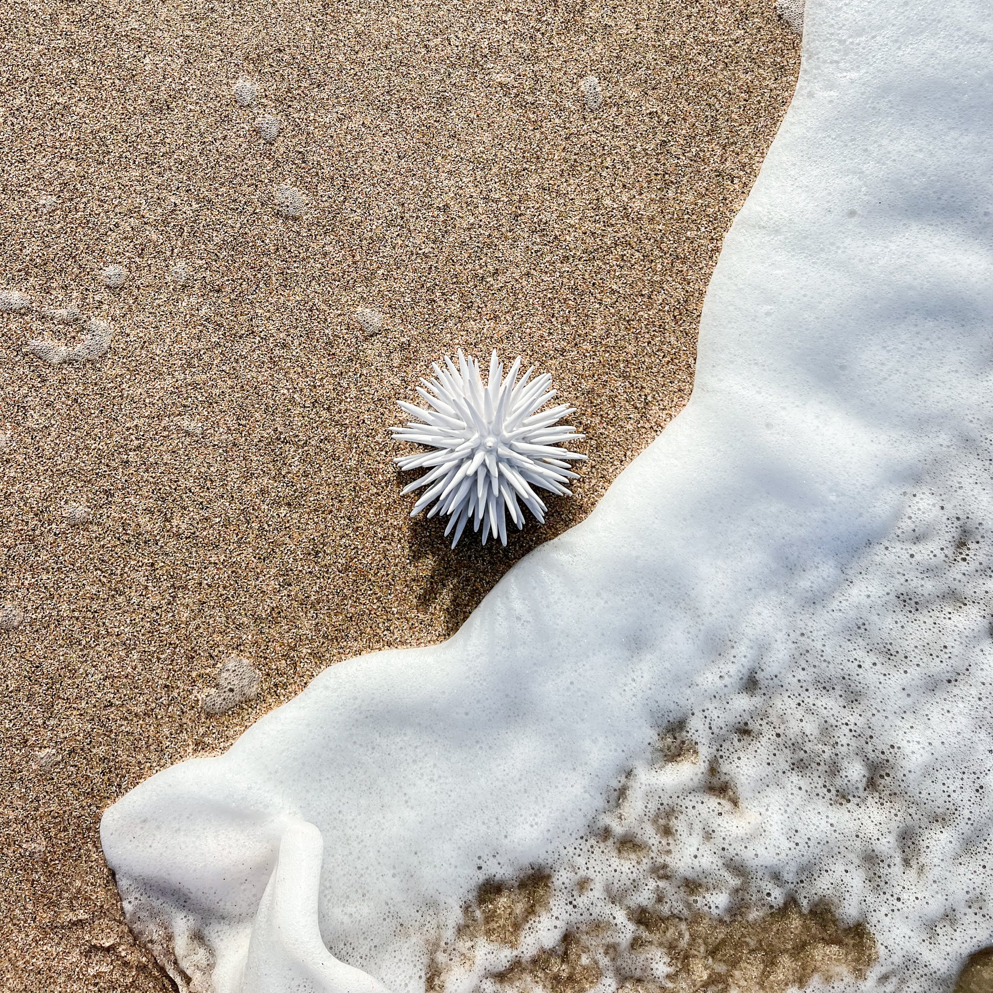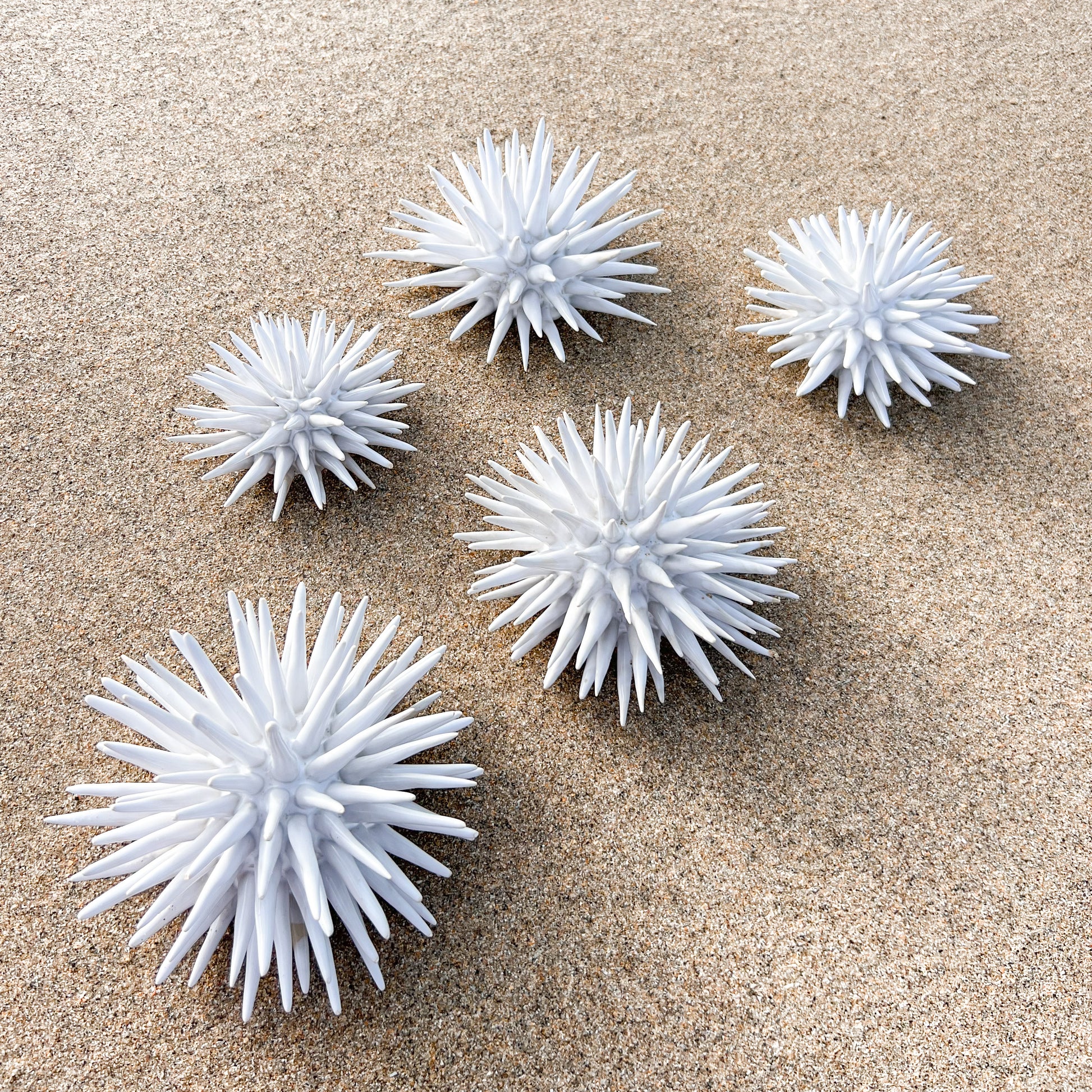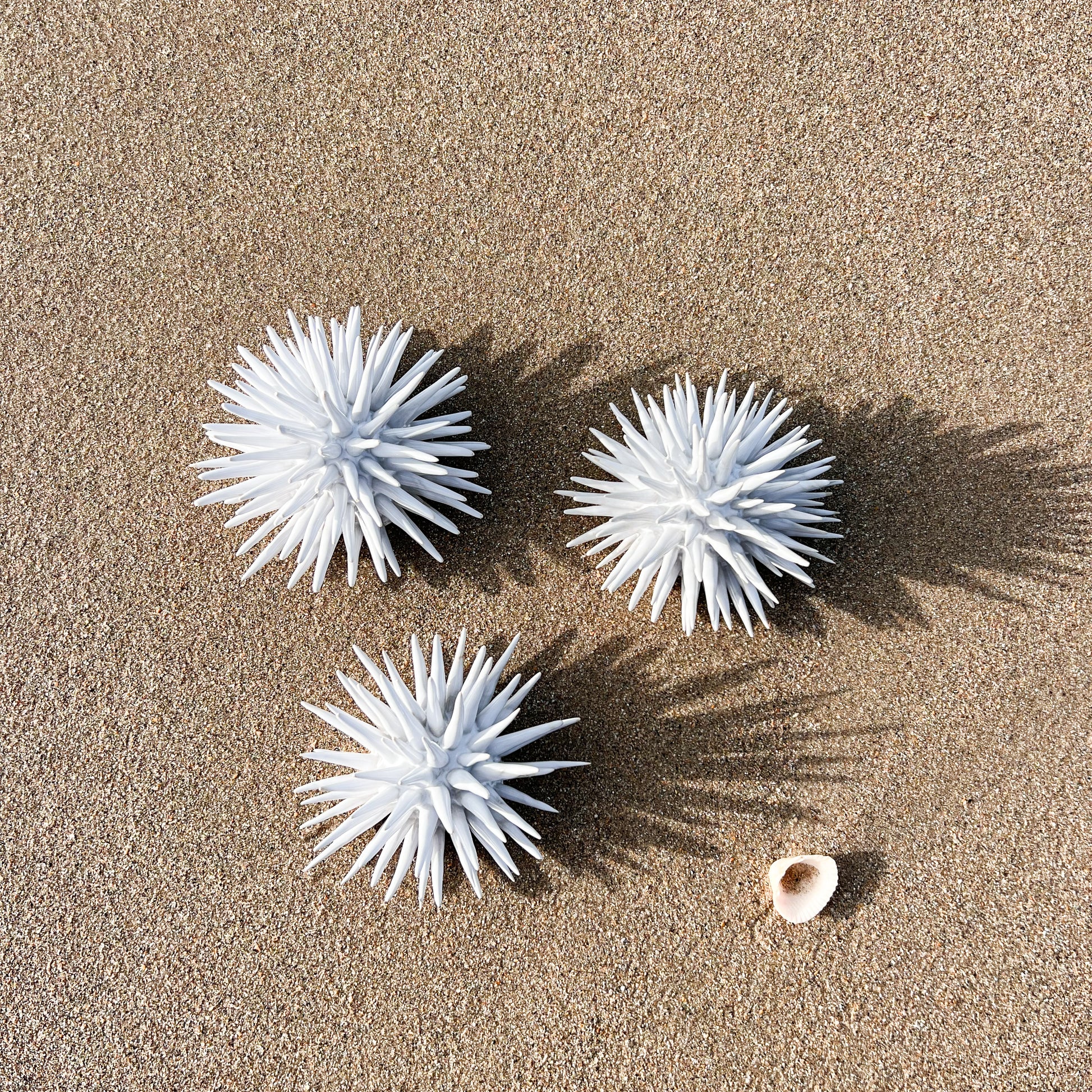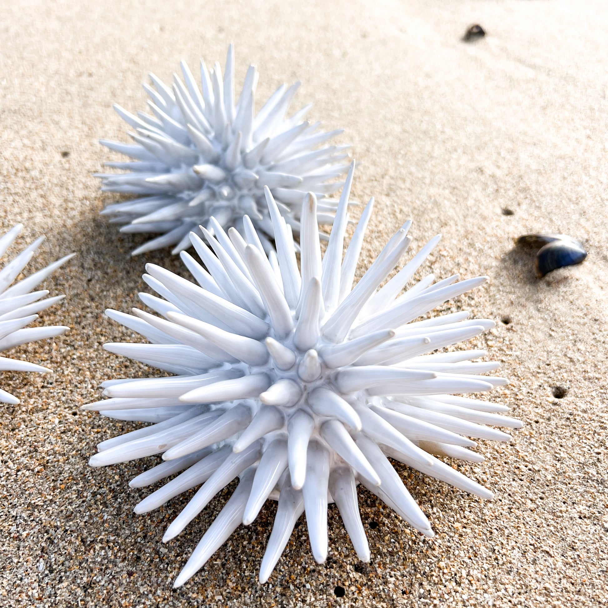 Les oursins en céramique sont modelés à la main à partir de grès blanc et recouverts d'email blanc.